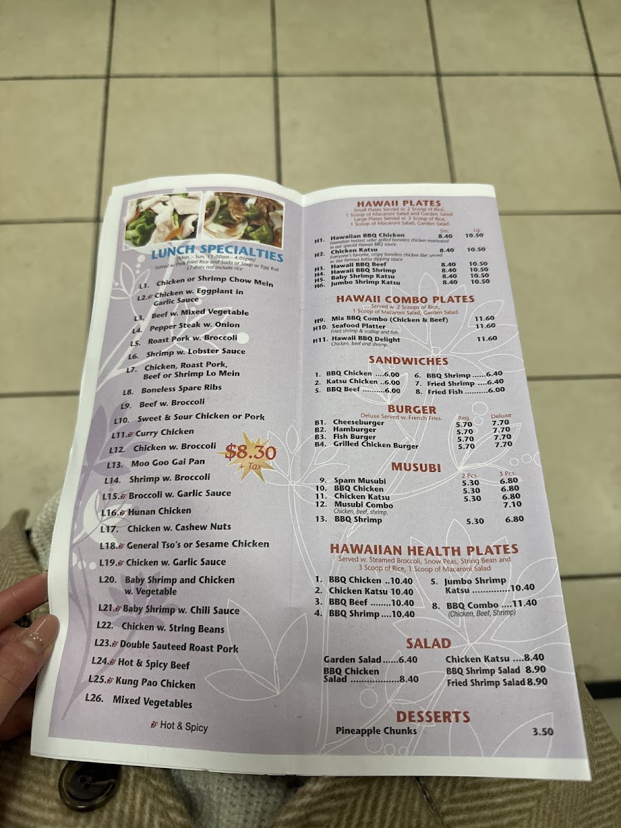 The menu features approachable appetizers like crisp egg rolls and spicy Szechuan dumplings, perfect for sharing or starting a meal. Soups such as hot and sour or wonton egg drop provide warm, soothing options especially welcoming on cooler days or whenever you crave something light yet flavorful. For a heartier choice, the Hawaiian Health Plates—featuring selections like BBQ chicken or jumbo shrimp katsu—offer balanced meals with a touch of grilled goodness.